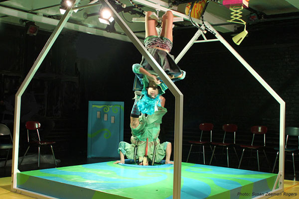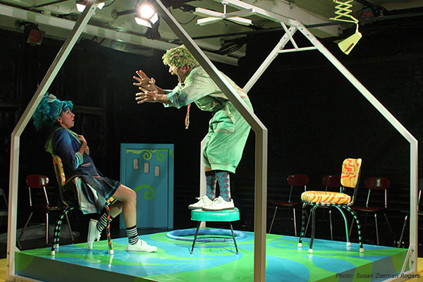 "The lessons in extreme social conservatism are so catchy and dazzlingly designed, it is impossible not to get entranced by them in the hour and a half tilt-o-whirl. The games are devised with athletic blocking by Irizarry, hilarious sound effects and a danceable soundtrack (Marcelo Anez is the sound designer), resourceful, pop-concert lighting by Lucrecia Briceno on a circus-like playground of a set by Susan Zeeman Rogers (who also designed the cartoony, colorful objects) that is just full of surprises, quirks, and innovations including hidden traps and a mini trampoline."